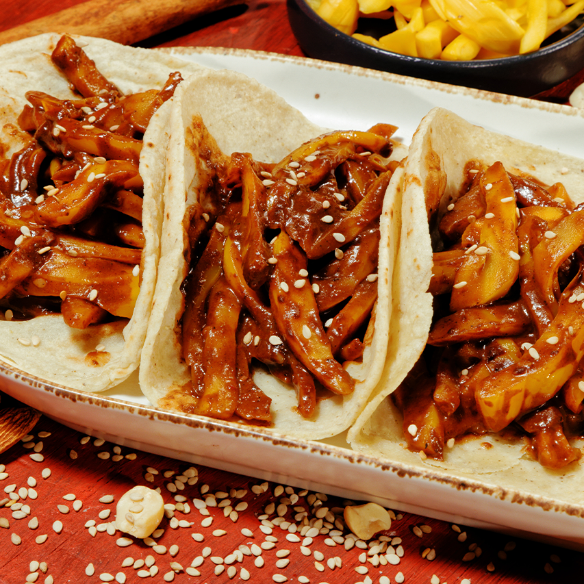 Tacos sind ein beliebtes mexikanisches Gericht, das aus einer weichen Tortilla, die mit verschiedenen Zutaten gefüllt ist, besteht. Die Füllung kann aus Seitan, Gemüse, Bohnen oder veganem Käse bestehen und wird oft mit Salsa, Guacamole oder veganer saurer Sahne garniert.